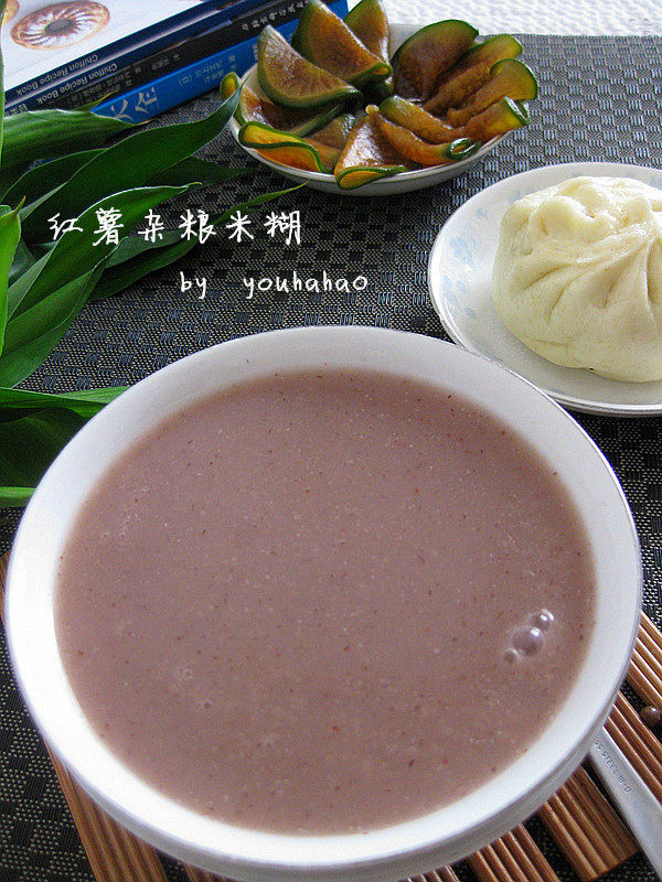 2:提前一晚把等比例的杂粮清水泡上,早起用豆浆机打碎成糊状