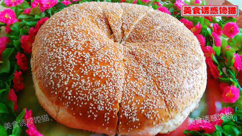 10:在大面饼上铺上一层麻薯。