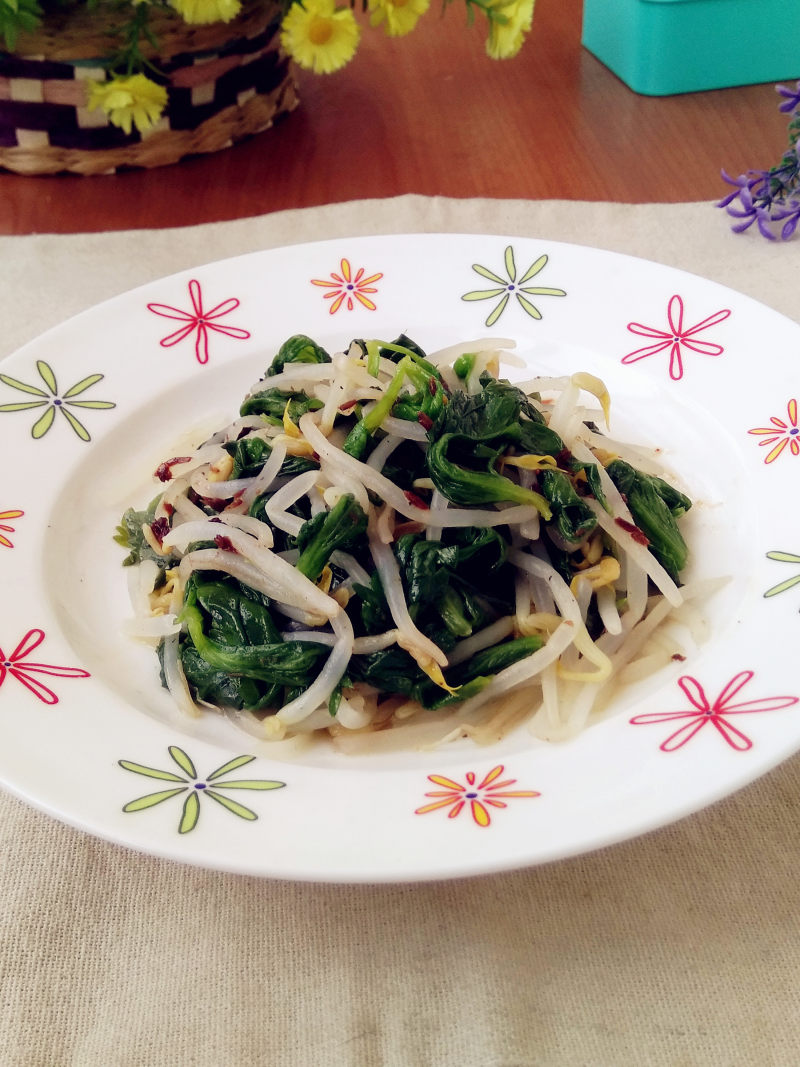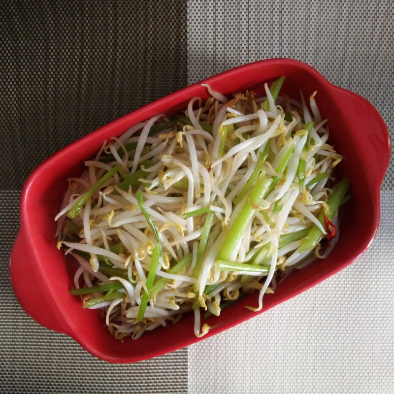 芹菜和豆芽翻炒差不多一定加醋,激出芹菜和豆芽本属的香气。加个小红辣椒吃起来更香。这个菜炒的时间不要太久,否则菜软踏踏就失去口感。