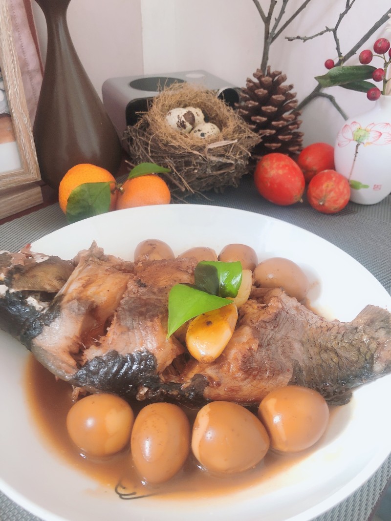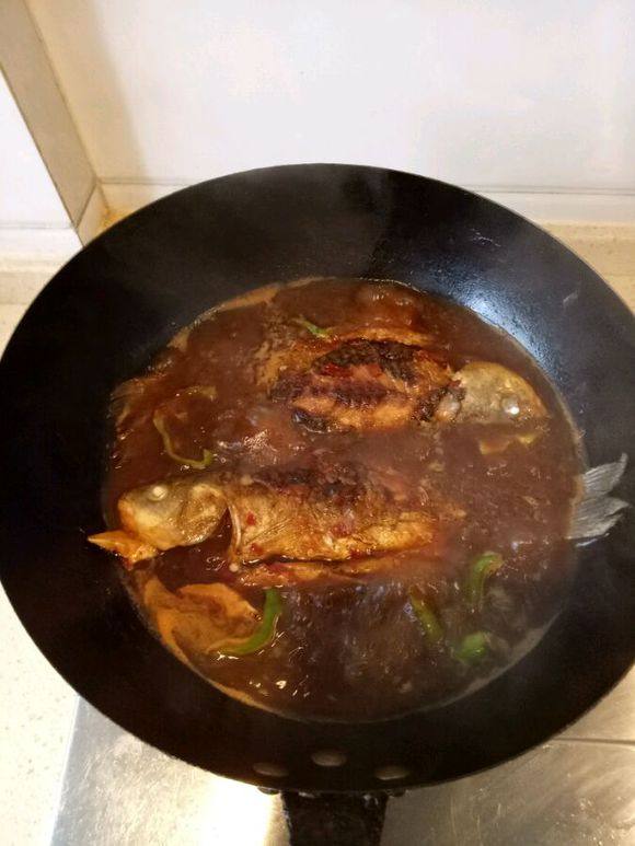 6:加水差不多没过鱼身,大火炖半小时就差不多了,中间可以给鱼翻身一下,这次特地加了砂糖橘皮做出来一股清香味,很不错。