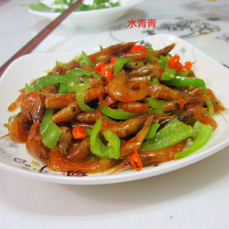 青椒适量;干虾适量;