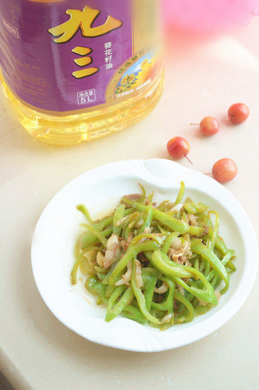 九三葵花籽油适量;五花肉2两;尖椒3个;