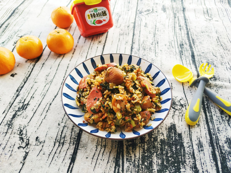 莴笋叶300克;素香肠2根;板栗300克;大米150克;