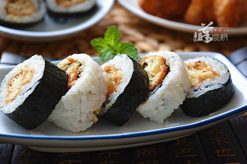 2:备好熟米饭、肉松、油条、寿司竹帘、海苔、白开水和饭勺