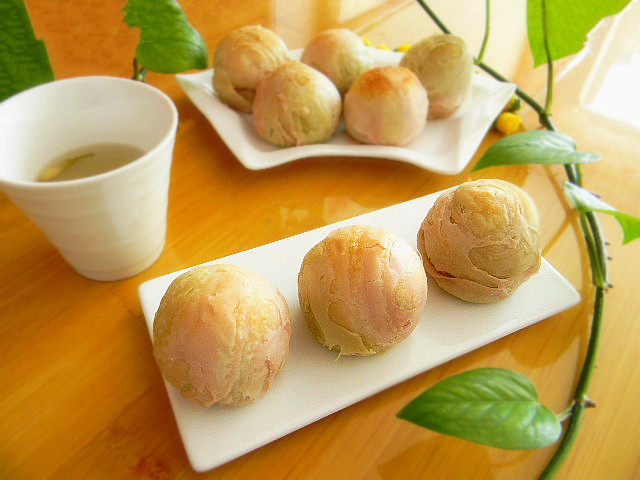 20:绿色酥皮制作同理,就不一一赘述了(都拍照了,但再重复一遍篇幅太长了)。