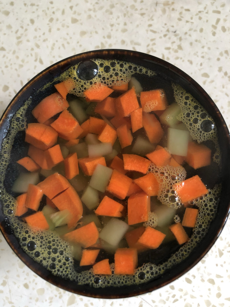1:胡萝卜和莴笋都切成小丁。