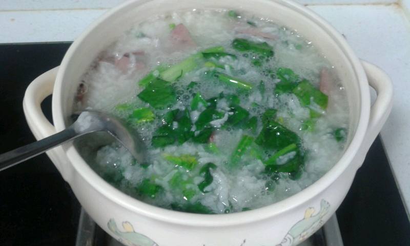 喜欢喝稀粥的就不要煮太久,喜欢喝浓稠一点的就稍微煮酒点,但要控制好水量。菠菜也可以切成末,家里有小孩的不爱吃青菜的就可以打成汁来煮,有小孩的姜丝也就可以少放点。