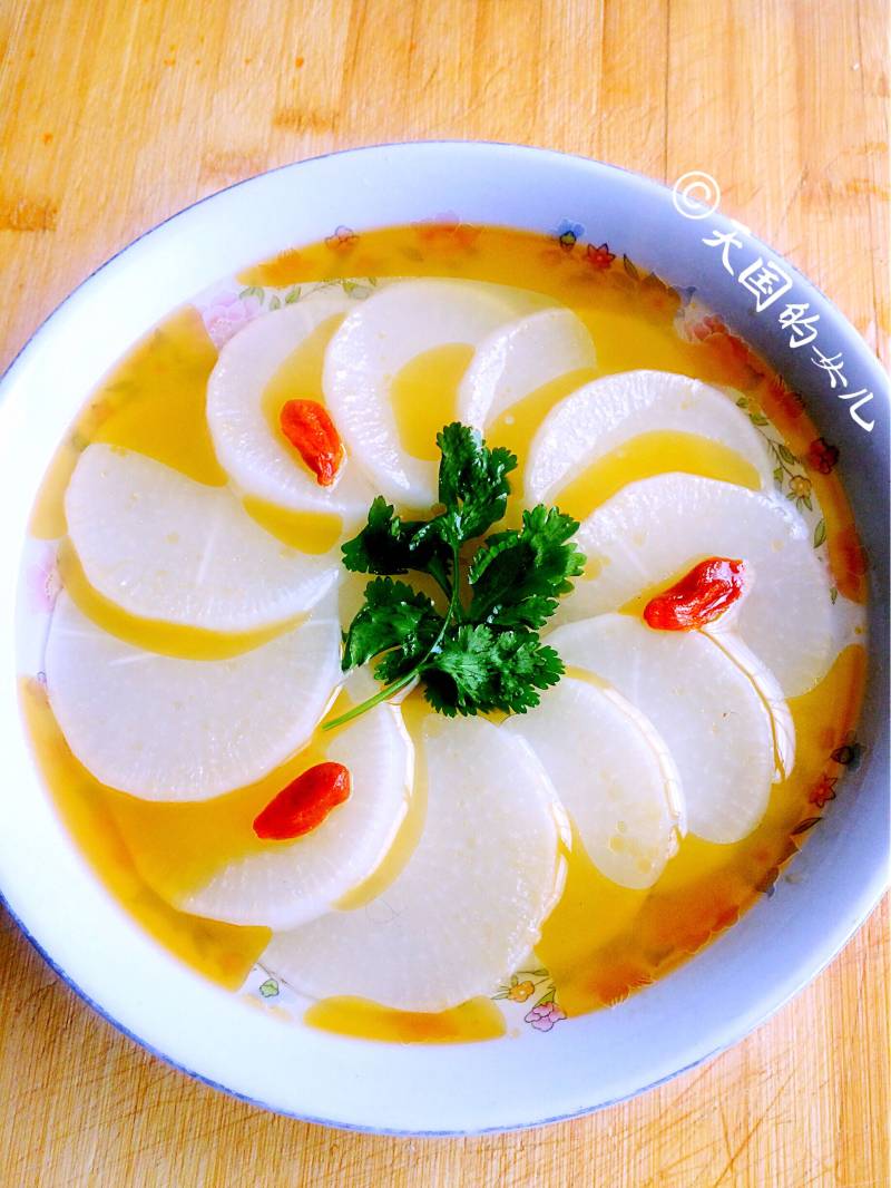 11:等汁水彻底冷却后,加入吸干水分的萝卜片放冰箱冷藏过夜即可