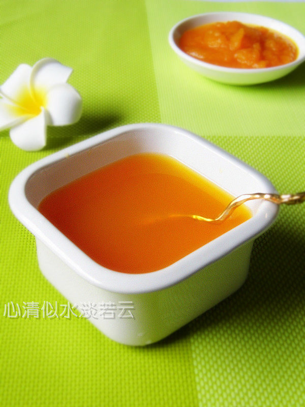 5:将胡萝卜羹过筛即成胡萝卜汁,剩下的泥可以单独吃一顿