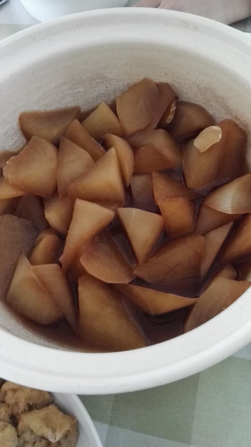 6:盖盖焖熟,最后尝尝咸淡,开锅后要用小火慢慢炖,不够味可以加盐。一定要让萝卜全部透明,熟透才能入味。