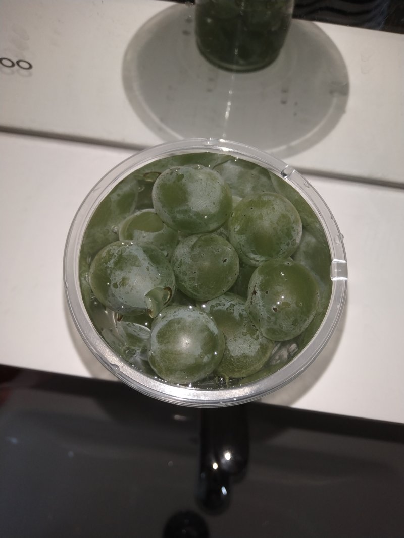 1:将葡萄用流动水冲洗后用淡盐水泡十几分钟,沥干,用水果小刀切成两瓣,刀尖把籽挑出来,剥掉葡萄皮。