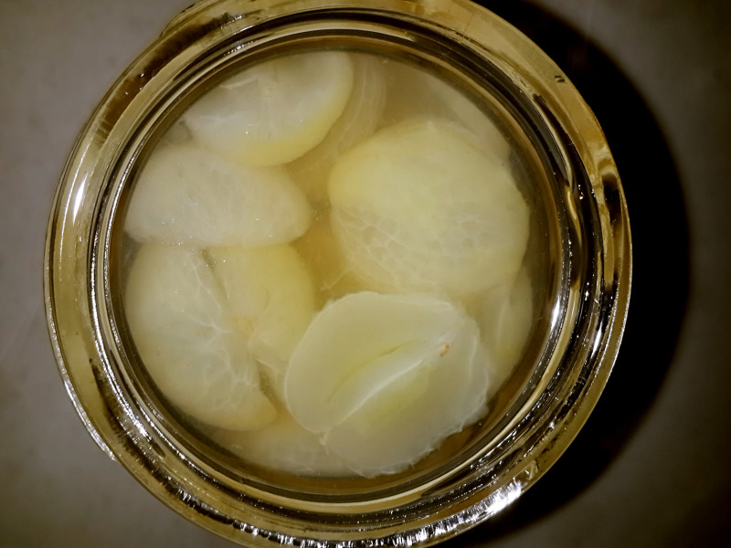 3:冷却装进用开水烫过的玻璃瓶里,进入冰箱保存。随时可以拿出来吃。
