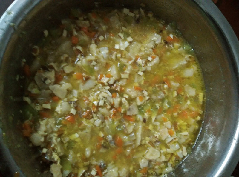 5:把冬菇、青豆、玉米粒和红萝卜放适量油稍煸干;