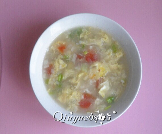 土豆70G;西红柿55G;白萝卜适量;绿尖椒适量;葱适量;姜适量;盐适量;花椒面适量;胡椒粉适量;香油适量;鸡蛋1个;