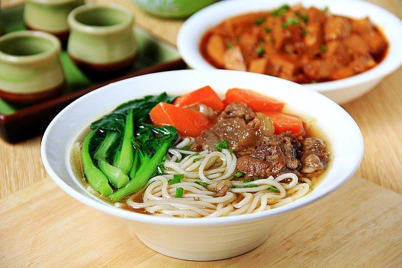 新鲜面条200克;牛腩400克;胡萝卜1个;小青菜1小把;