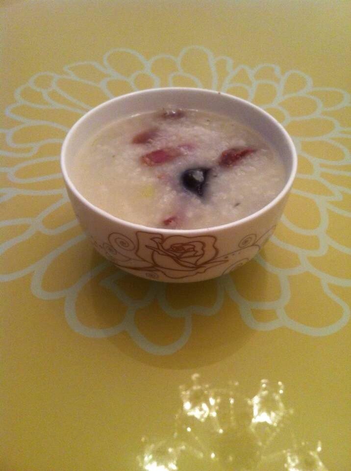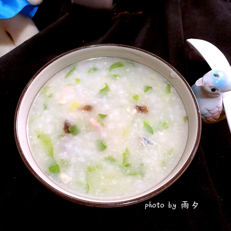 8:开盖,放入粥里,再滚下,搅拌下,就可以吃了;