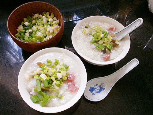 3:粥完全熟透后加入鸡精,盐,小葱进行调味。