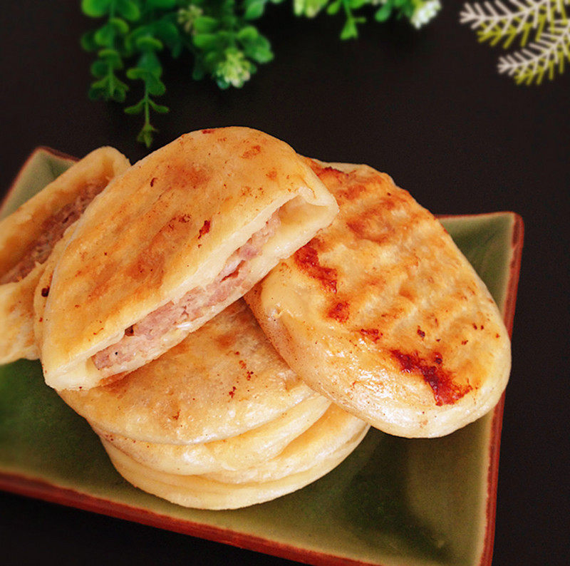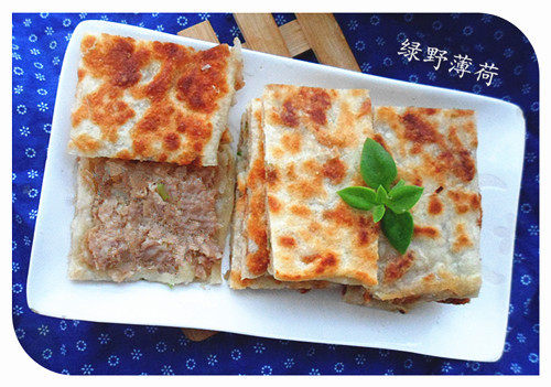 1.面团比较软,用手只能粗粗揉成团,要不然太黏手;用筷子搅拌成无干粉的面团就可以了,饧后非常好操作;最好能饧1小时再用,面团自然生筋,韧性非常好;2.肉馅中不要打水,这样可保持肉馅成坨,加热过程中也不会产生太多汁水从而影响饼皮的口感。3.面片的尾端划成细条再卷成卷,目的是为了煎烙之后能够透过错综纵横的面条使面皮酥脆。