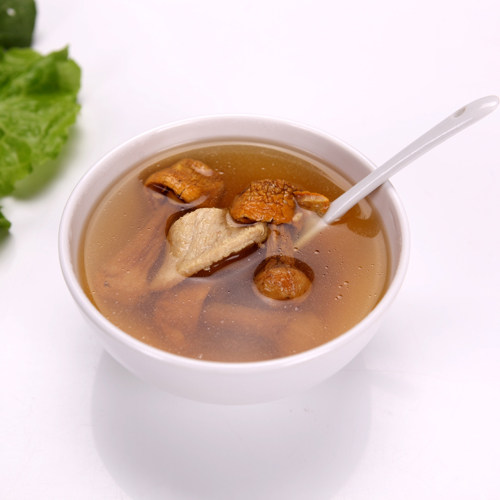 野生灵芝10克;猪展肉1块;枸杞10个;桂圆3个;红枣3个;党参3段;