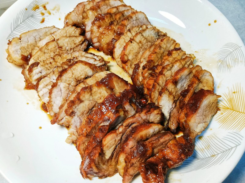 11:看到卤汁全包裹在叉烧上就可以了,取出叉烧放至餐盘中晾凉。