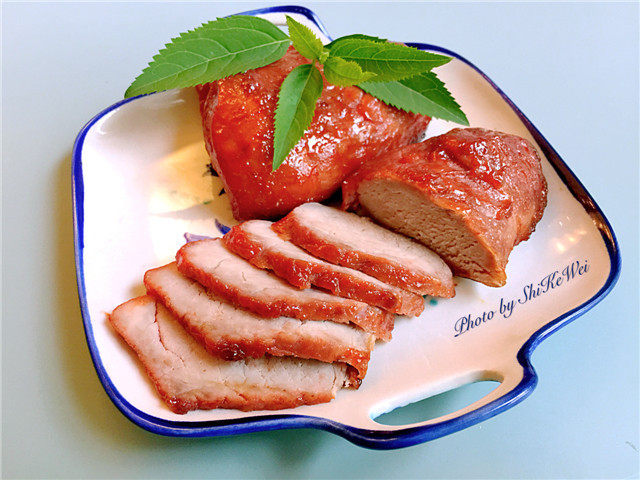 3:烤好后拿出,切好装盘,无与伦比的美味叉烧,夏日快手菜。