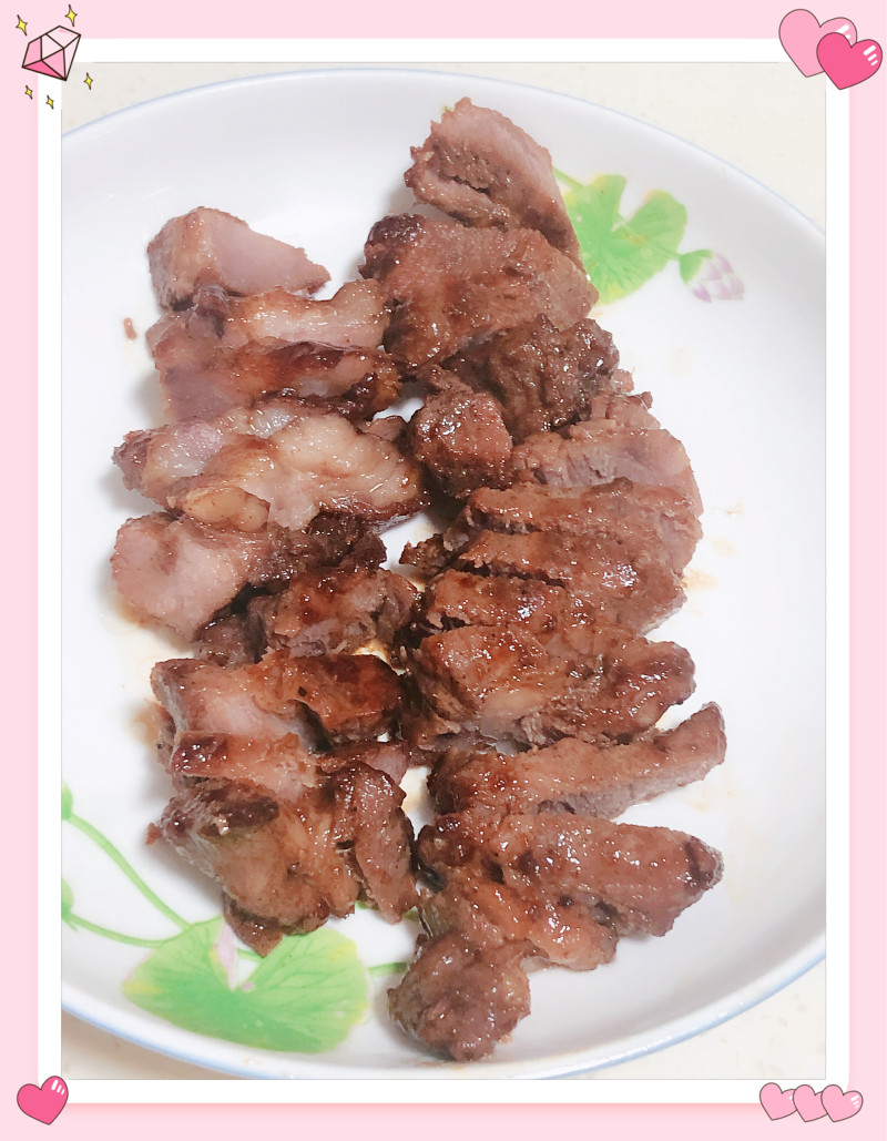 烤制时间自己掌握,因为我买回梅花肉已是切成小块的,所以时间应该烤短点