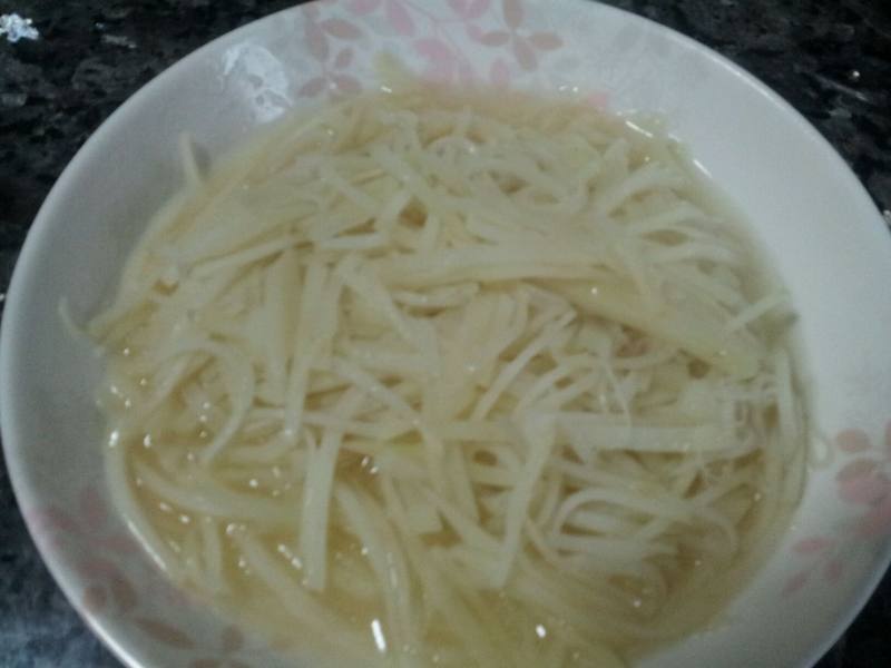 1:土豆切丝泡水下锅时沥水