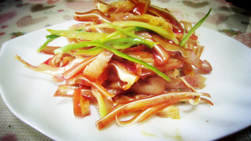 1:猪耳朵炖熟后,切丝待用