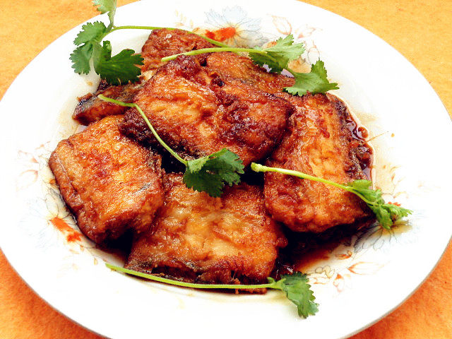 6:加水差不多没过鱼身,大火炖半小时就差不多了,中间可以给鱼翻身一下,这次特地加了砂糖橘皮做出来一股清香味,很不错。