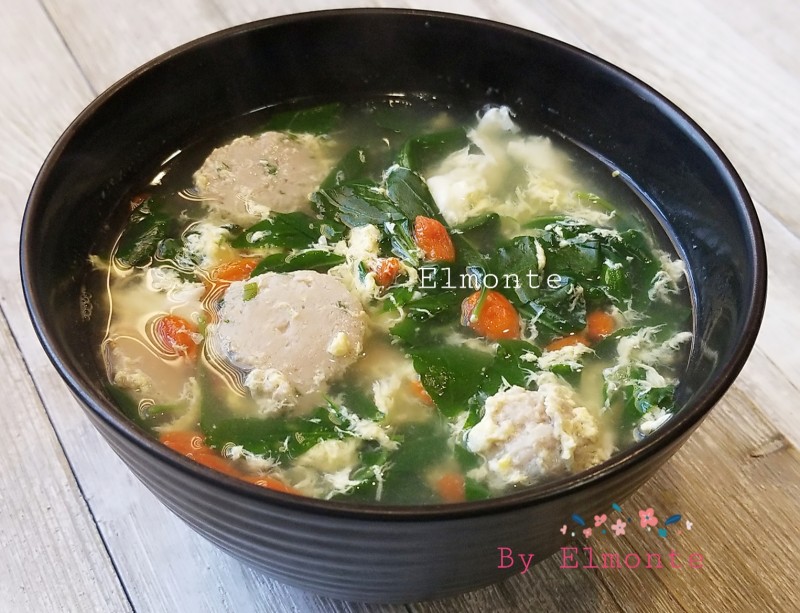 枸杞叶适量;猪肉丸子8-9个;鸡蛋2个;
