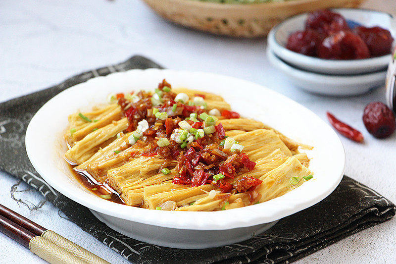 小提示:腐竹必须用凉水泡开,不能用热水泡,否则太烂,不要泡太长时间也不能煮太长时间。