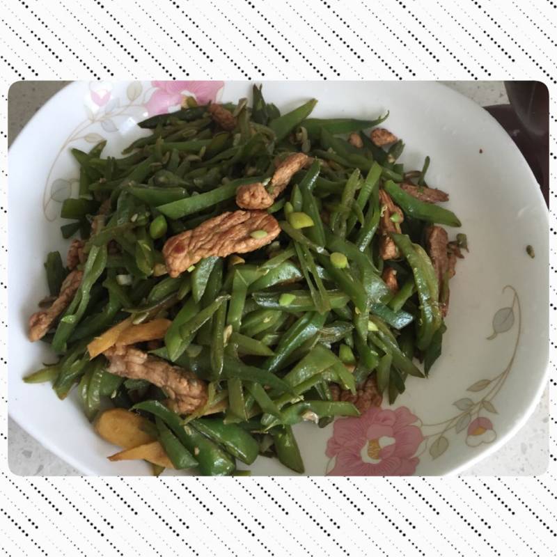 2:梅豆洗净去夹、切丝;肉切丝;姜切丝。
