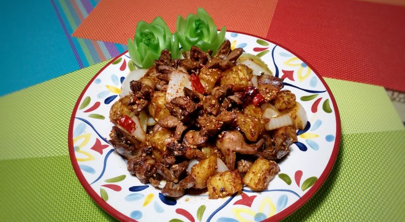 7:视情况加适量水,炒至土豆熟加盐、鸡精炒。