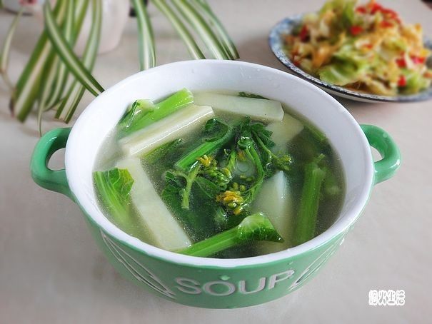 7:土豆煮熟后放入切好的白菜苔煮熟。