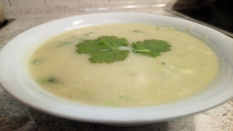 7:重新把打碎的汤倒回锅中,加入一勺酸奶油,下面调味:1.要吃咸味的,加香菜碎,盐,黑胡椒调味。2.要吃甜味的,加蜂蜜和柠檬汁调味。