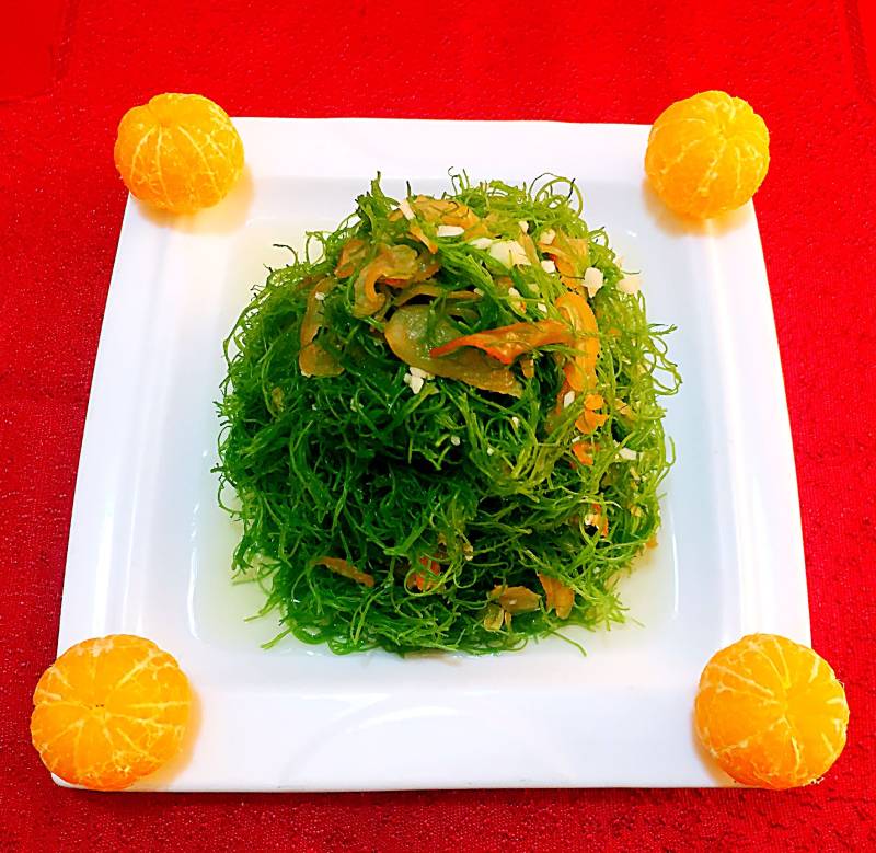 龙须菜300克;海蜇丝200克;蒜10克;