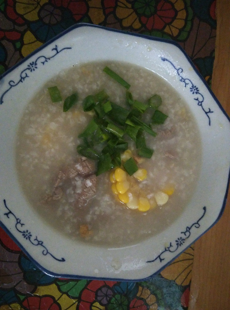 牛肉100G;玉米半根;葱1根;大米50G;水适量;