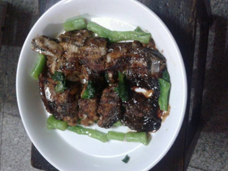 5:不粘锅倒油热锅倒入茄瓜煸炒.这样煮过的茄瓜再用油煎是不需要太多油