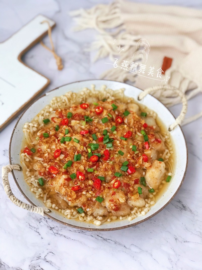 1、水开上锅蒸10分钟即可,时间久了口感太老了,不吃辣的蒜蓉辣椒和小米辣可以不要,辣椒去掉可以稍微加点盐或者多放一勺生抽。2、盘子中可以垫金针菇,粉丝,娃娃菜都可以。