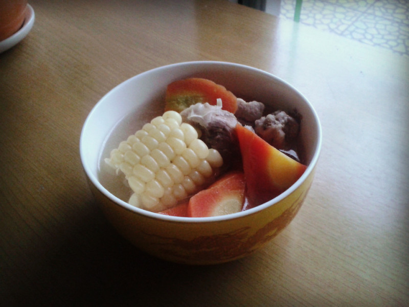 6:放入胡萝卜,玉米后再煮三十分钟,加入盐即可食用