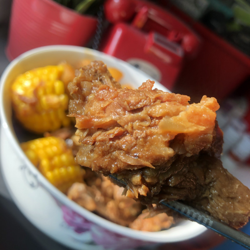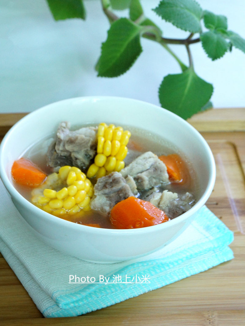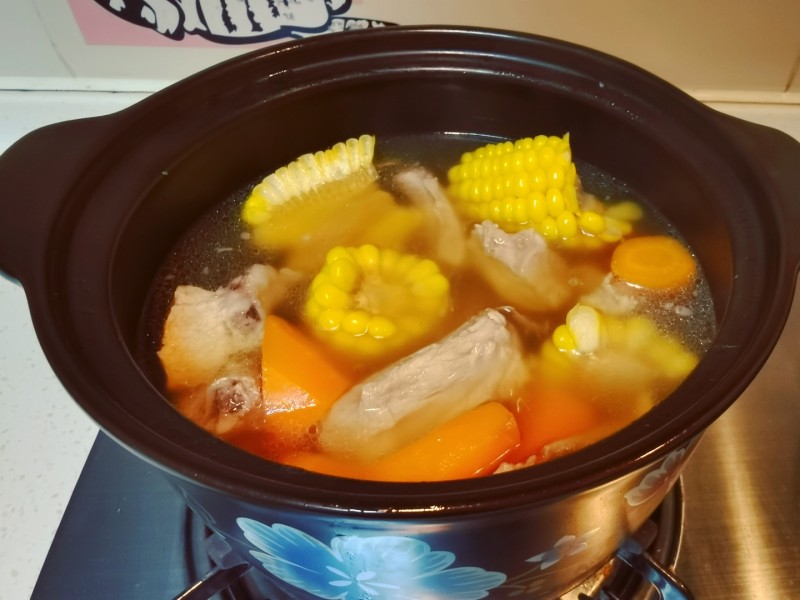 6:把玉米和胡萝卜放入沙锅中,与排骨同煲90分钟即可关火;
