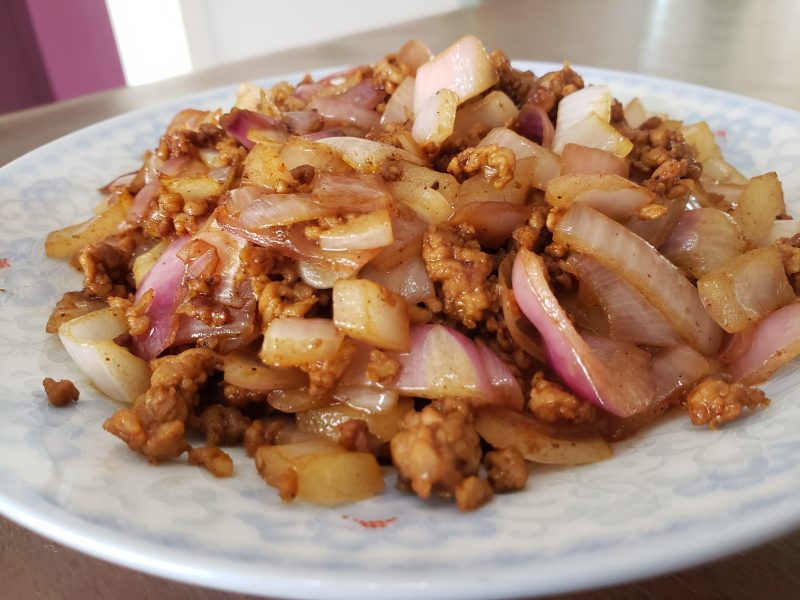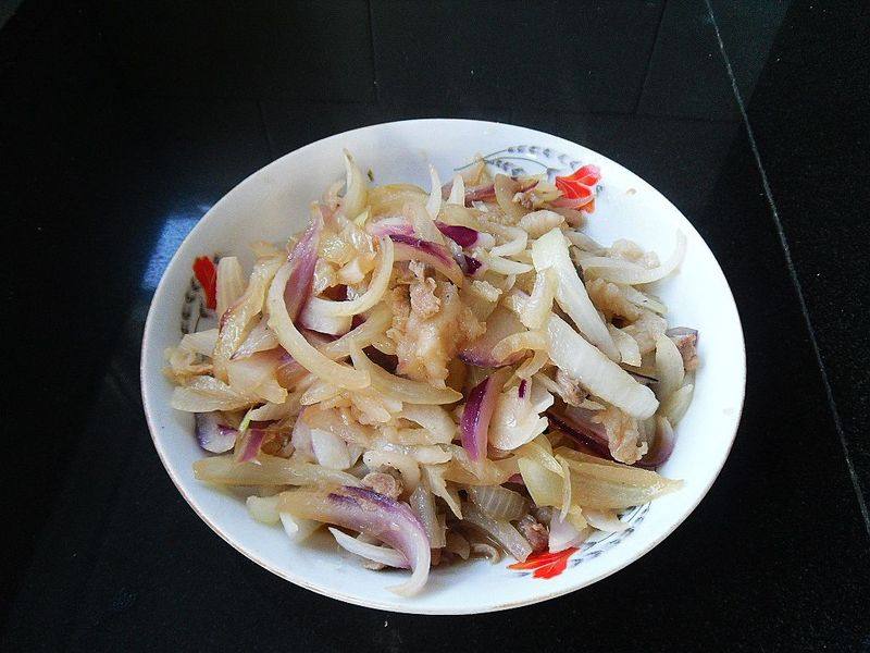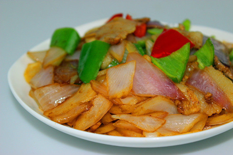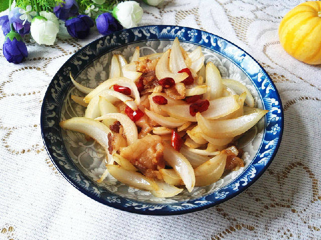 8:这样子一份好吃下饭的洋葱腊五花就完成了。