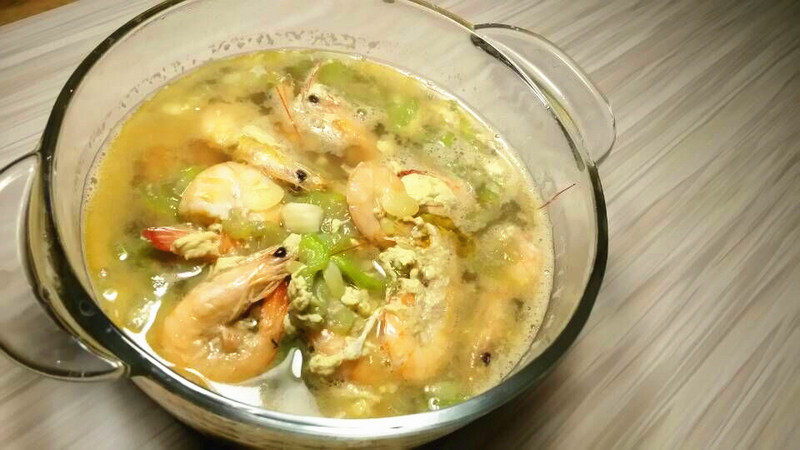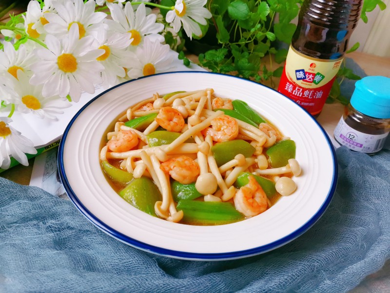 13:超级鲜美的鲜虾丝瓜白玉菇就做好了。