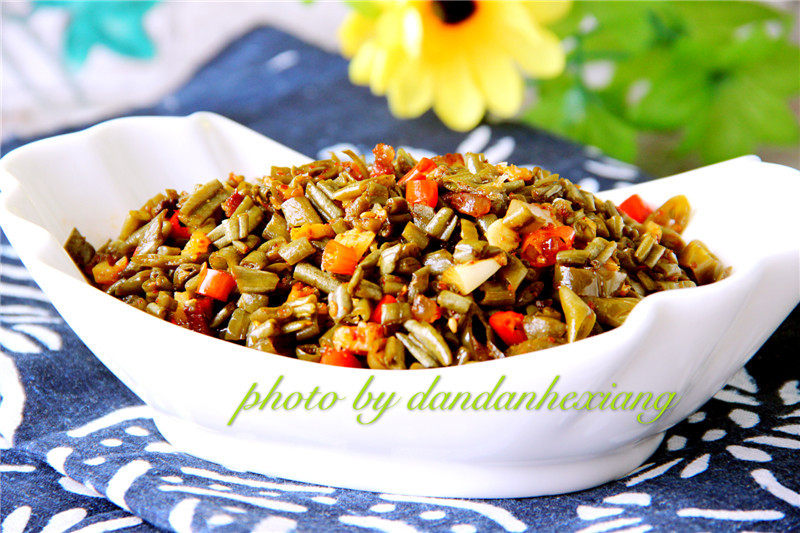 6:下豆角,盐,少许生抽,耗油煸炒,即可。