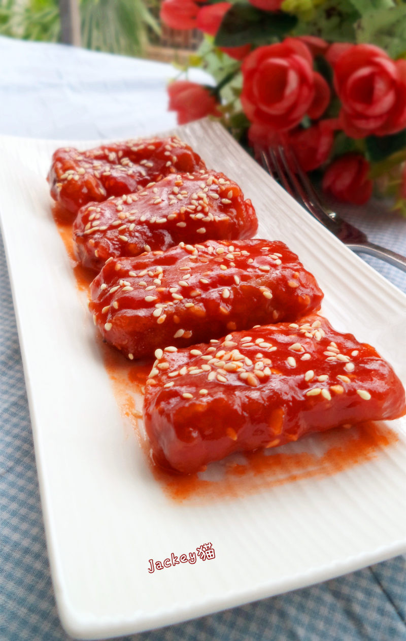2:排骨用油炸至金黄酥脆(复炸一次)。