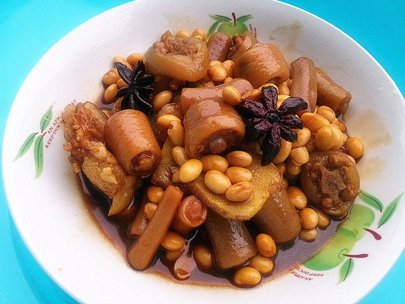 猪尾巴两根;黄豆一把;八角两粒;老姜两片;