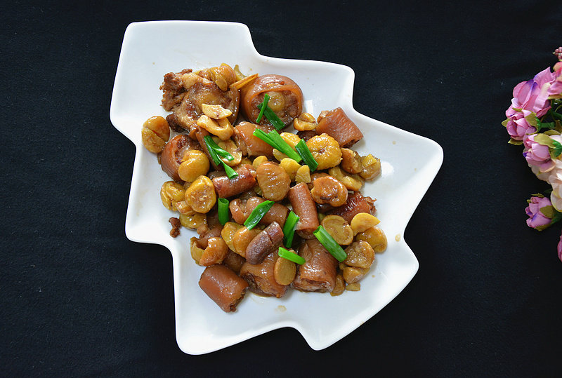 猪尾巴2根;栗子适量;姜适量;蒜适量;八角适量;花椒适量;桂皮适量;香叶适量;草果适量;