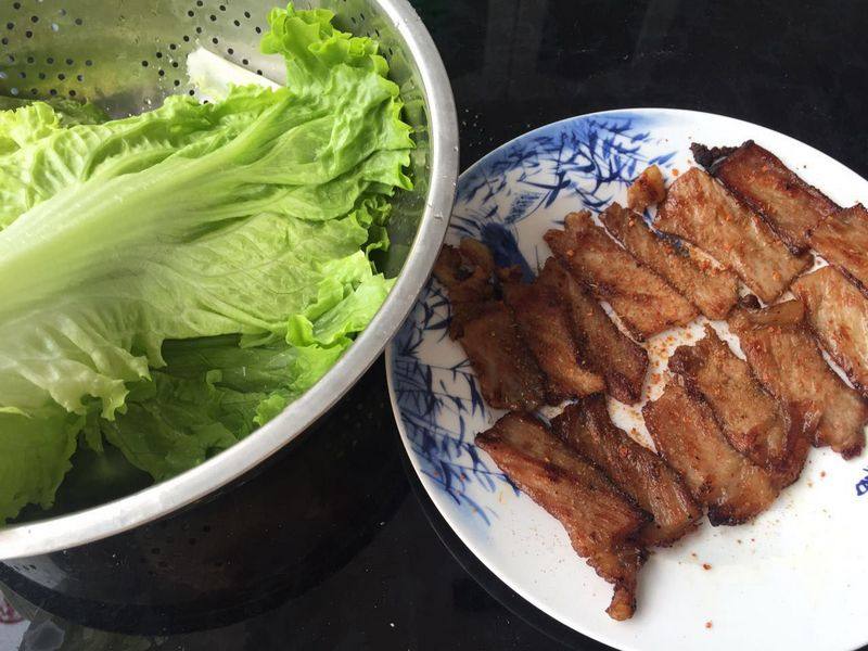 8:生菜叶洗净控干,可以包着烤肉开始享用美食啦.