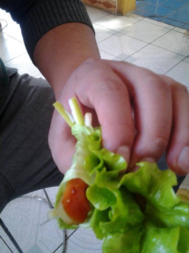 16:生菜卷烤肠放入几根葱丝味道也很独特哦