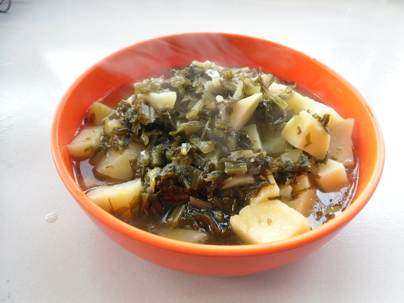 2:雪里蕻洗净切碎,泡去一部分咸味。